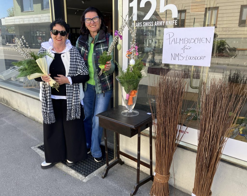 Aus unserem Veranstaltungskalender nicht wegzudenken ist der Palmbuschenverkauf am Palmsamstag in Melk vor dem Geschäft von Modegraf und in Loosdorf bei Maria Schedlmayer. Schon Tage zuvor haben fleißige Clubschwestern in gemütlichen Runden Palmbuschen gebunden, dafür ein herzliches Dankeschön! Bedanken möchten wir uns aber vor allem bei den vielen Besucher/-innen, die bei strahlendem Sonnenschein mit ihrem Kauf wieder zur Unterstützung unserer sozialen Projekte beigetragen haben.