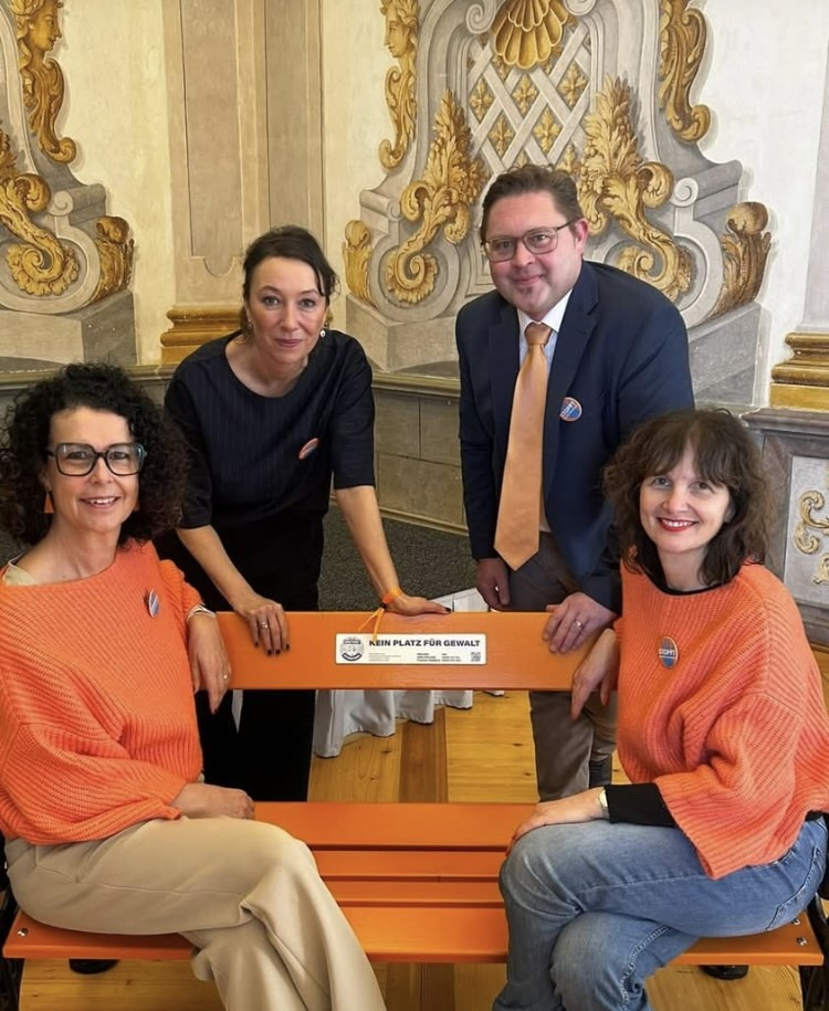 Orange Bänke stehen auch seit dem Weltfrauentag 2025 im Melker Stadtpark und in anderen